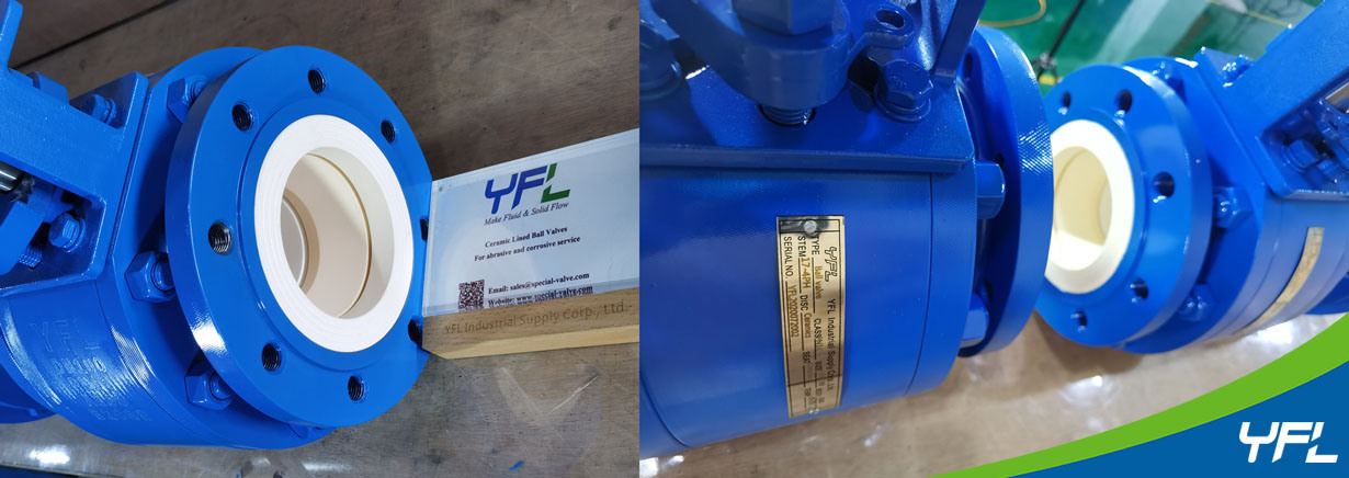 YFL PN10 DN400 Abrasion resistant ceramic ball valves are exported to Turkey. The wear resistant ceramic ball valves will be used on silobus unloading line in pneumatic convey system. The abrasive powders delivered in the pneumatic convey system include: